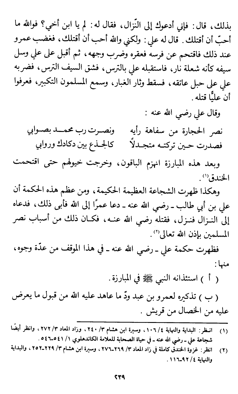 (¬1) انظر: البداية والنهاية 4/ 106، وسيرة ابن هشام 3/ 240، وزاد المعاد 3/ 272، وانظر أيضًا شجاعة علي - رضي الله عنه - في حياة الصحابة للعلامة الكاندهلوي 1/ 541 - 546.