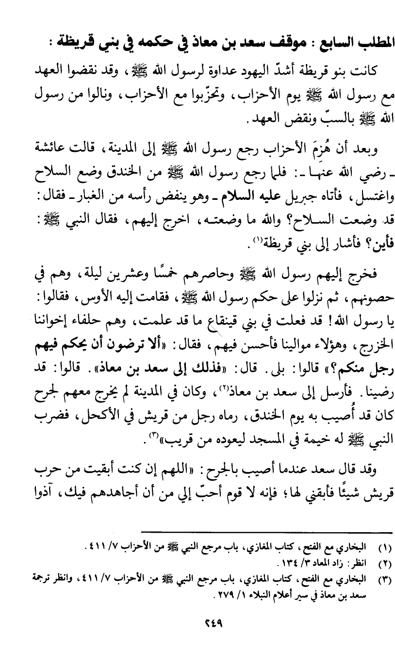 (¬3) البخاري مع الفتح، كتاب المغازي، باب مرجع النبي صلى الله عليه وسلم من الأحزاب 7/ 411، وانظر ترجمة سعد بن معاذ في سير أعلام النبلاء 1/ 279.