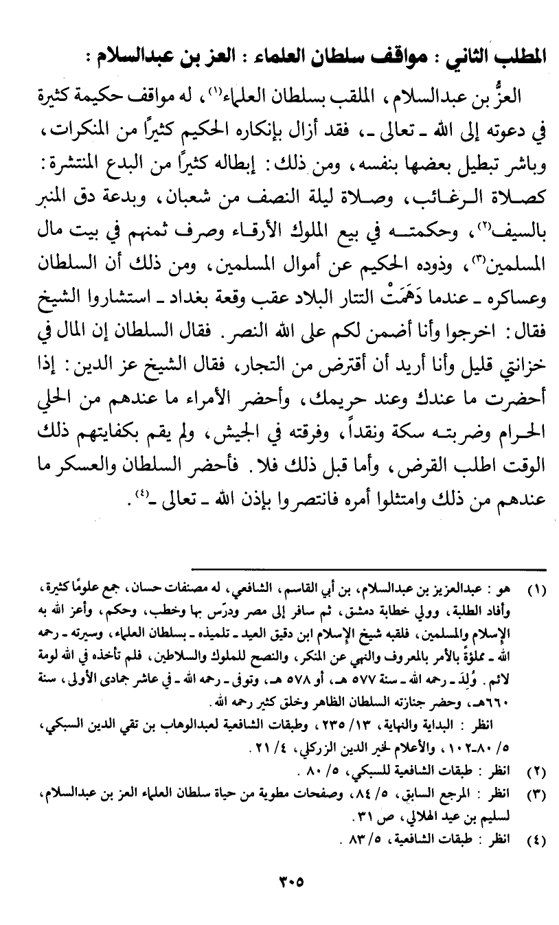 (¬3) انظر: المرجع السابق، 5/ 84، وصفحات مطوية من حياة سلطان العلماء العز بن عبد السلام، لسليم بن عيد الهلالي، ص31.