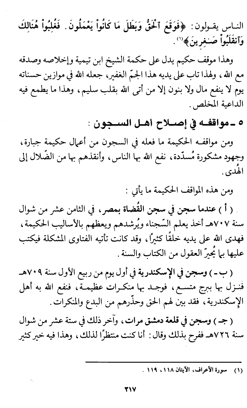 5 - مواقفه في إصلاح أهل السجون: ومن مواقفه الحكيمة ما فعله في السجون من أعمال حكيمة جبارة، وجهود مشكورة مُسدّدة، نفع الله بها الناس، وأنقذهم بها من الضلال إلى الهدى.