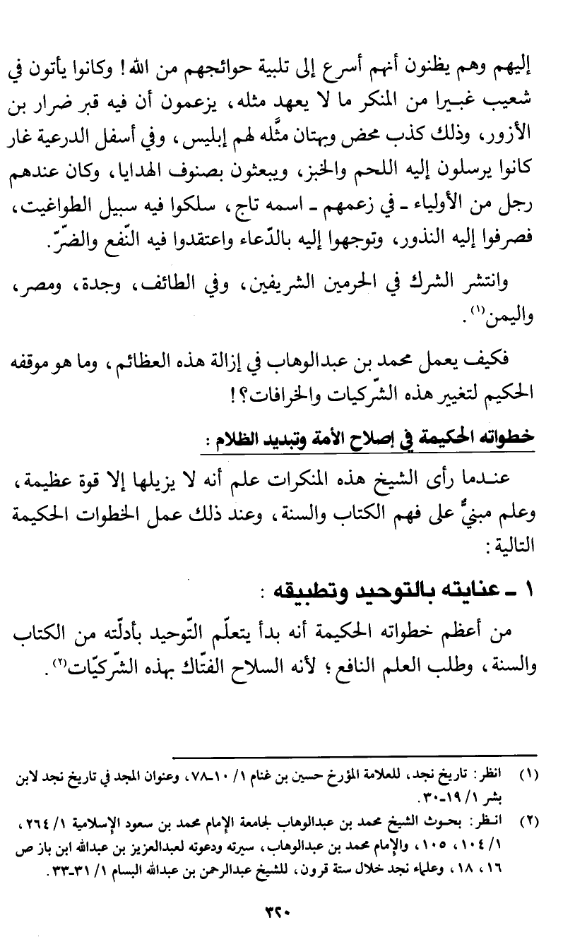 فكيف يعمل محمد بن عبد الوهاب في إزالة هذه العظائم، وما هو موقفه الحكيم لتغيير هذه الشركيات والخرافات؟!
