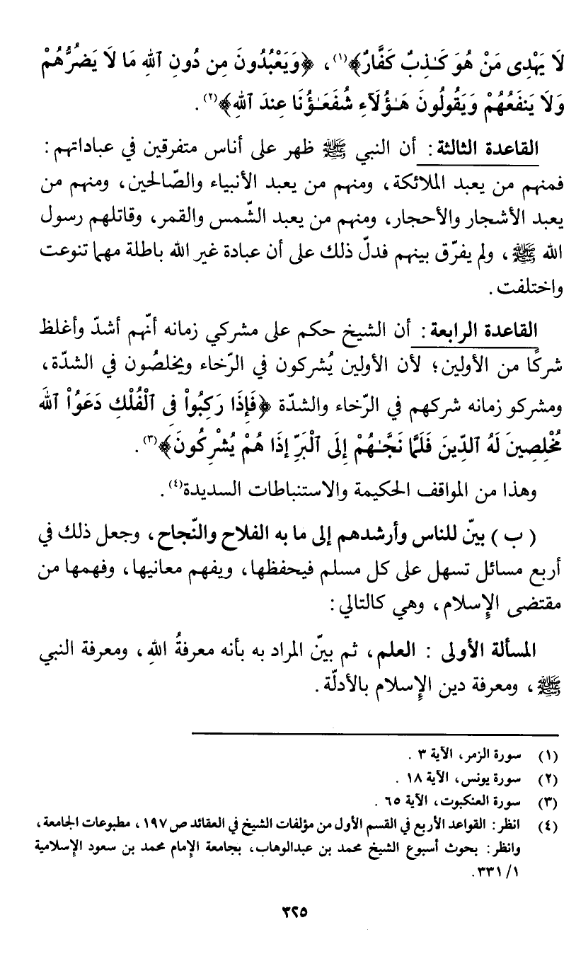 (¬3) انظر: القواعد الأربع في القسم الأول من مؤلفات الشيخ في العقائد ص197، مطبوعات الجامعة، وانظر: بحوث أسبوع الشيخ محمد بن عبد الوهاب، بجامعة الإمام محمد بن سعود الإسلامية 1/ 331.