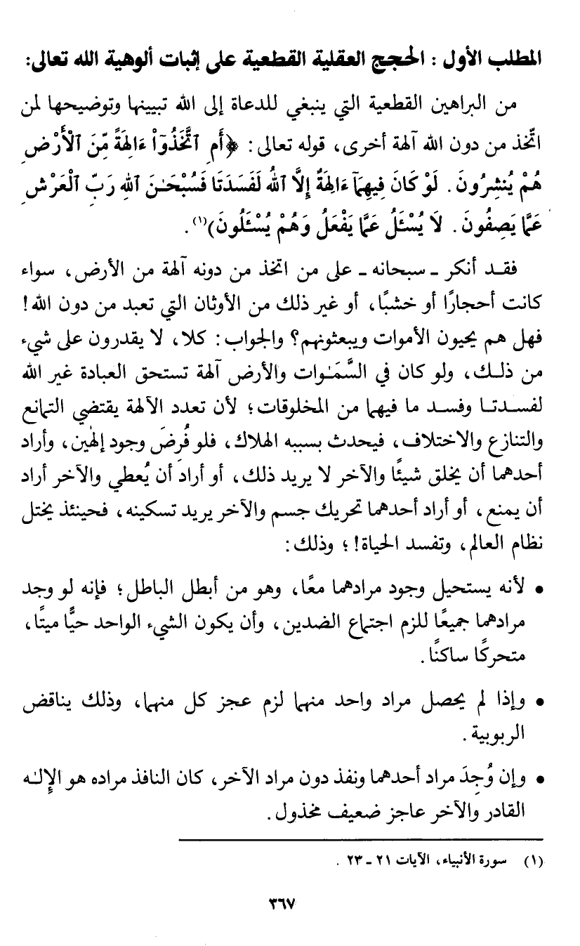(¬1) سورة الأنبياء، الآيات 21 - 23.