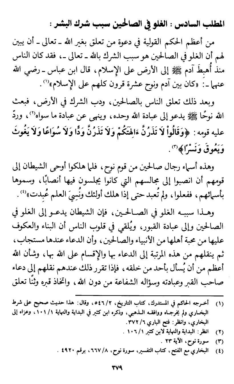 الغلو في الصالحين سبب شرك البشر