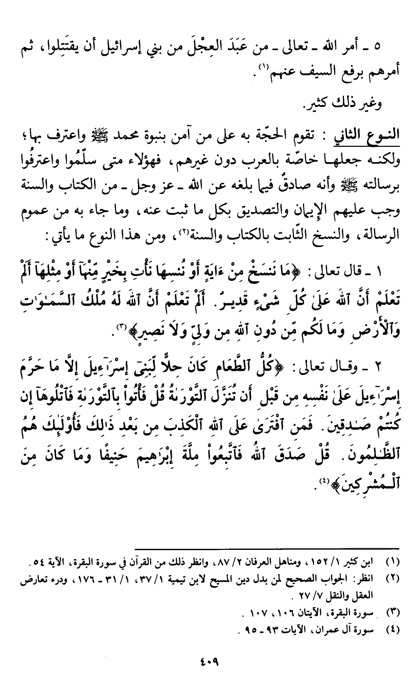 (¬1) ابن كثير 1/ 152، ومناهل العرفان 2/ 87، وانظر ذلك من القرآن في سورة البقرة، الآية 54.