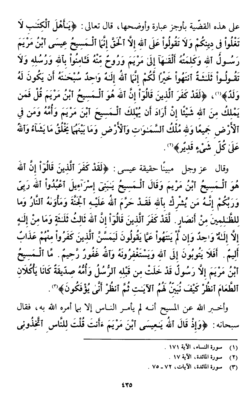 (¬3) سورة المائدة، الآيات 72 - 75.