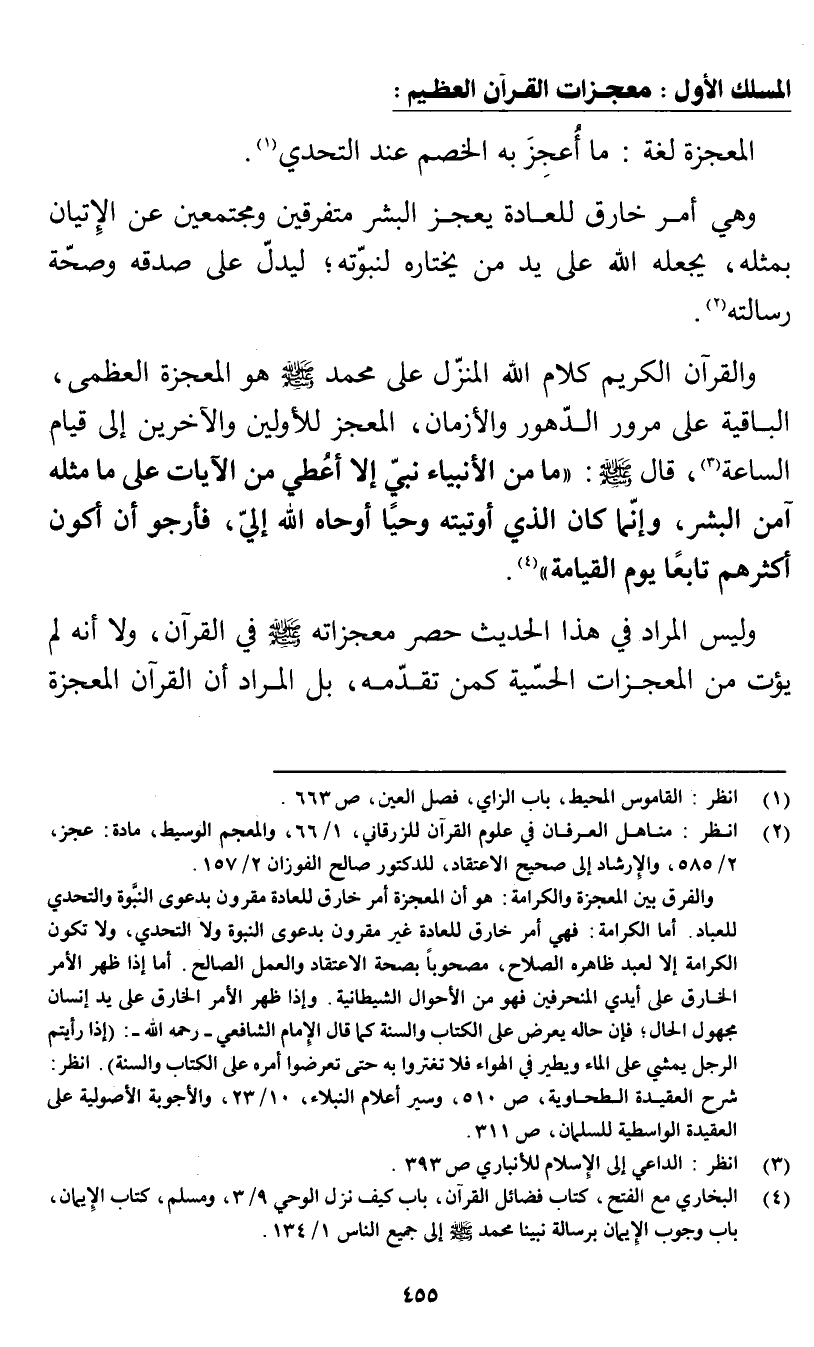 (¬2) انظر: مناهل العرفان في علوم القرآن للزرقاني، 1/ 66، والمعجم الوسيط، مادة: عجز، 2/ 585، والإرشاد إلى صحيح الاعتقاد، للدكتور صالح الفوزان 2/ 157.