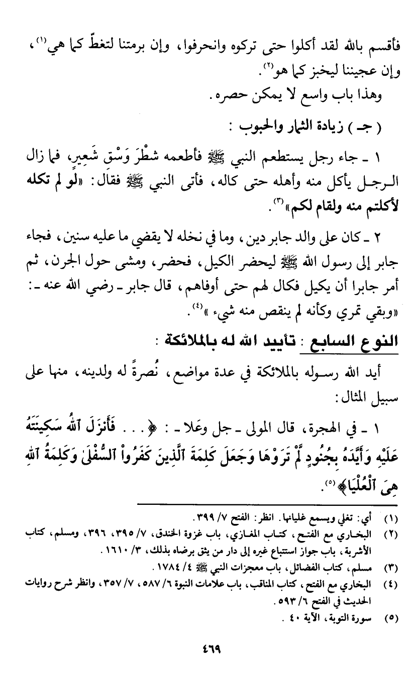 (جـ) زيادة الثمار والحبوب: 1 - «جاء رجل يستطعم النبي صَلَّى اللَّهُ عَلَيْهِ وَسَلَّم فأطعمه شطر وسق شعير، فما زال الرجل يأكل منه وأهله حتى كاله، فأتى النبي صَلَّى اللَّهُ عَلَيْهِ وَسَلَّم فقال: " لو لم تكله لأكلتم منه ولقام لكم» (¬3).