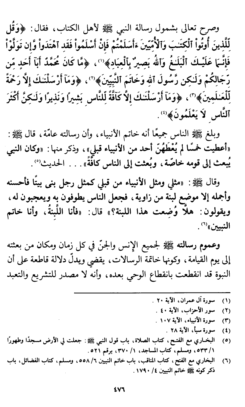 (¬6) البخاري مع الفتح، كتاب المناقب، باب خاتم النبيين 6/ 558، ومسلم، كتاب الفضائل، باب ذكر كونه صلى الله عليه وسلم خاتم النبيين 4/ 1790.