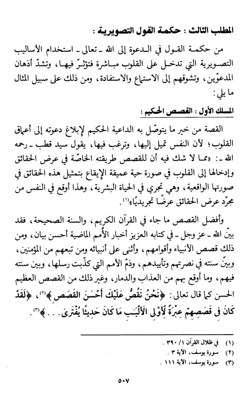 القصة من خير ما يتوصل به الداعية الحكيم لإبلاغ دعوته إلى أعماق القلوب؛ لأن النفس تميل إليها، وترغب فيها، يقول سيد قطب -رحمه الله-: "مما لا شك فيه أن للقصص طريقته الخاصة في عرض الحقائق وإدخالها إلى القلوب في صورة حية عميقة الإيقاع بتمثيل هذه الحقائق في صورتها الواقعية، وهي تجري في الحياة البشرية، وهذا أوقع في النفس من مجرد عرض الحقائق عرضا تجريديا" (¬1).