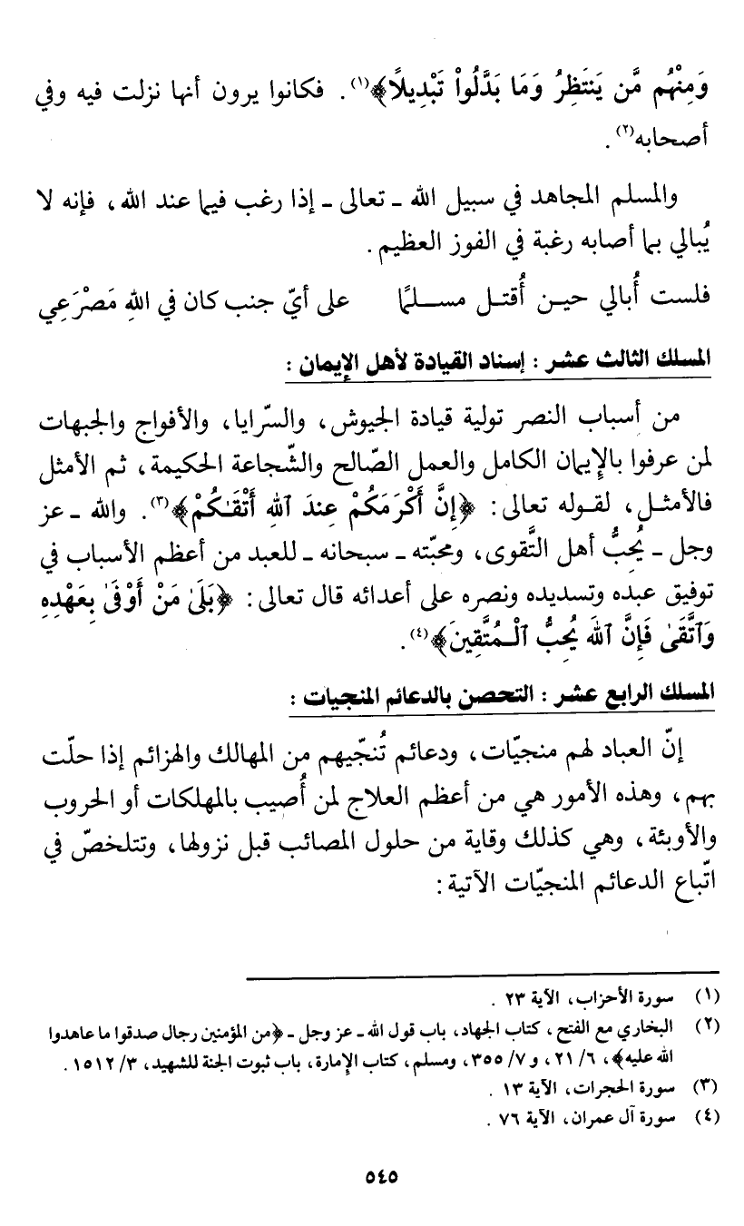(¬1) البخاري مع الفتح، كتاب الجهاد، باب قول الله -عز وجل- من المؤمنين رجال صدقوا ما عاهدوا الله عليه، 6/ 21، و 7/ 355، ومسلم، كتاب الإمارة، باب ثبوت الجنة للشهيد، 3/ 1512.