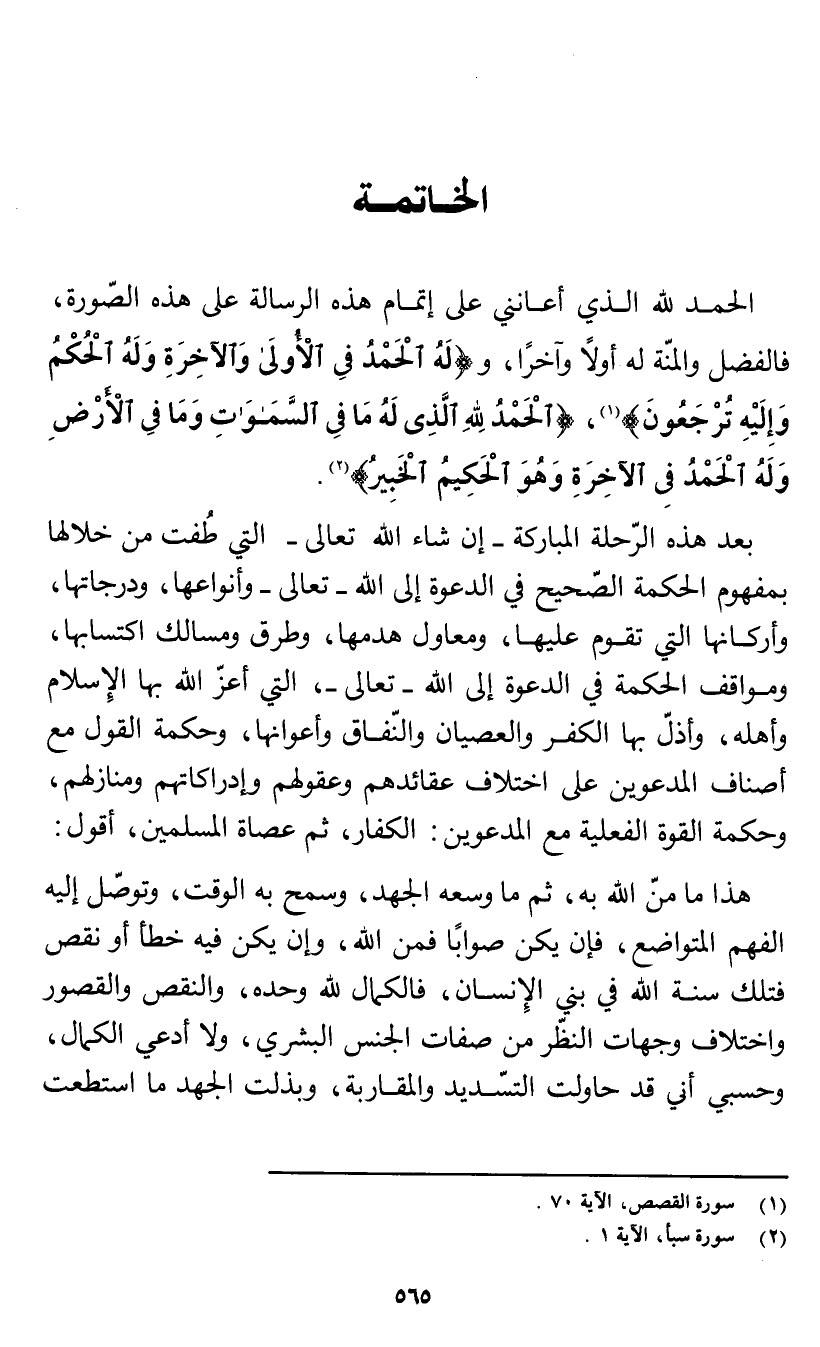 هذا ما من الله به، ثم ما وسعه الجهد، وسمح به الوقت، وتوصل إليه الفهم المتواضع، فإن يكن صوابا فمن الله، وإن يكن فيه خطأ أو نقص فتلك سنة الله في بني الإنسان، فالكمال لله وحده، والنقص والقصور واختلاف وجهات النظر من صفات الجنس البشري، ولا أدعي الكمال، وحسبي أني قد حاولت التسديد والمقاربة، وبذلت الجهد ما استطعت
