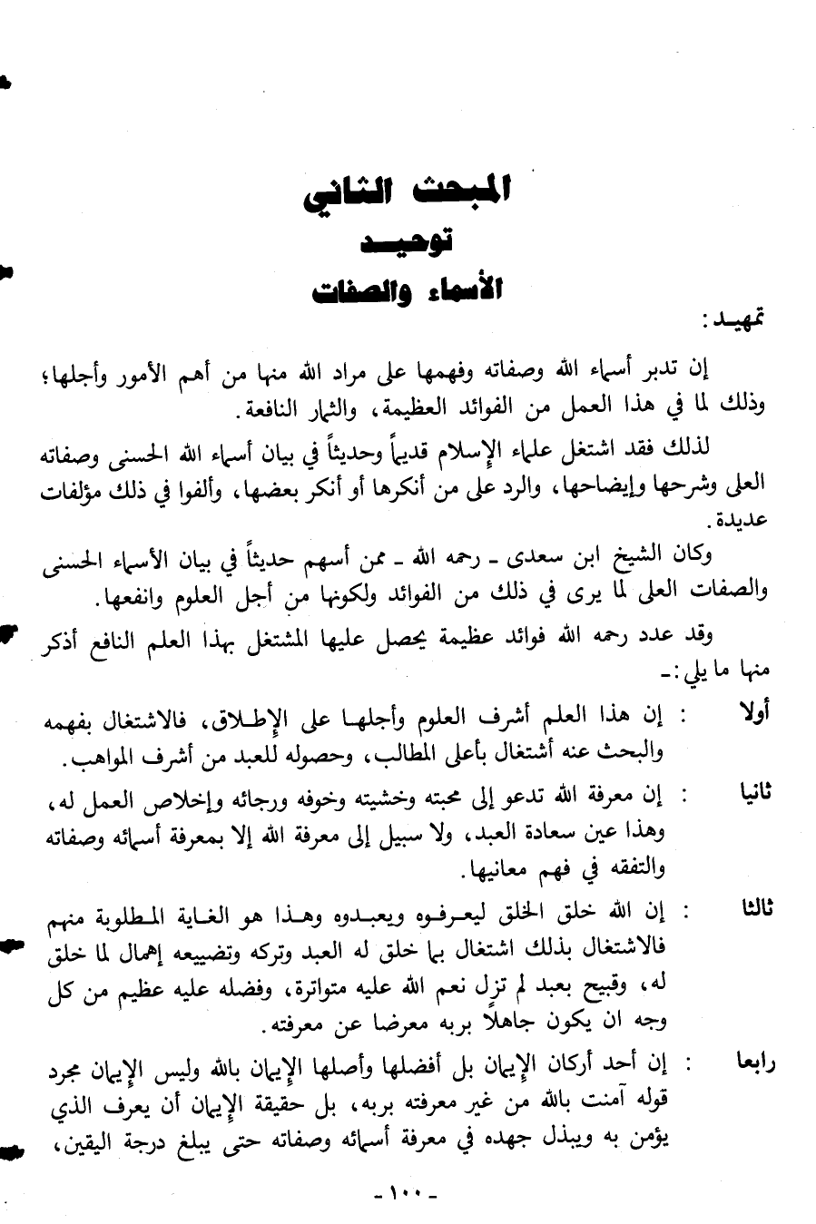 وكان الشيخ ابن سعدي ـ رحمه الله ـ ممن أسهم حديثاً في بيان الأسماء الحسنى والصفات العلى لما يرى في ذلك من الفوائد ولكونها من أجل العلوم وأنفعها.