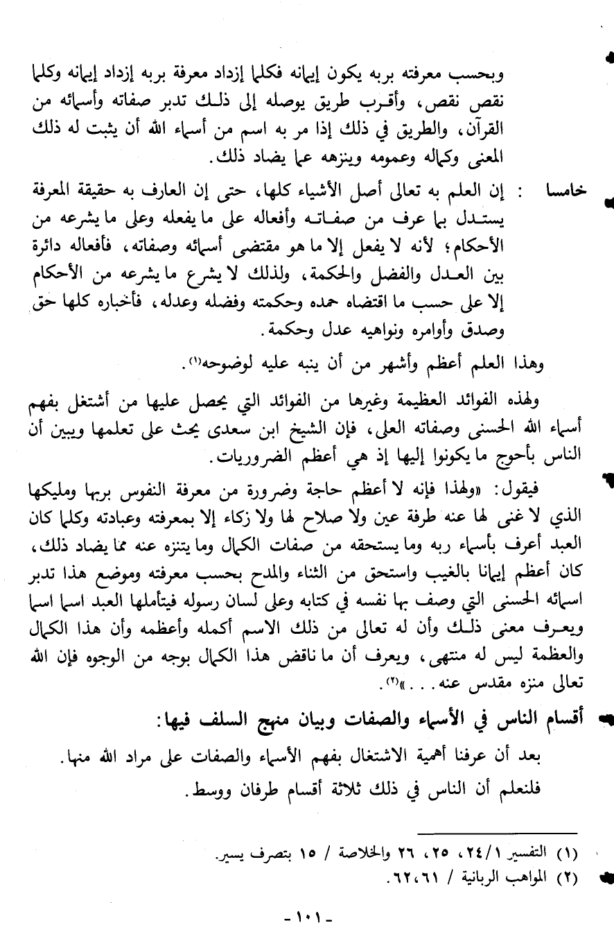 أقسام الناس في الأسماء والصفات وبيان منهج السلف فيها: