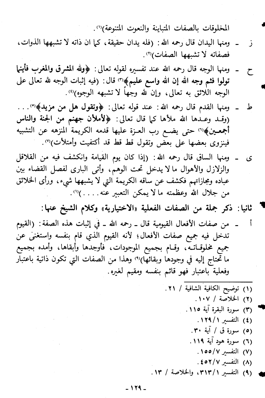 ثانيا: ذكر جملة من الصفات الفعلية "الاختيارية" وكلام الشيخ عنها: