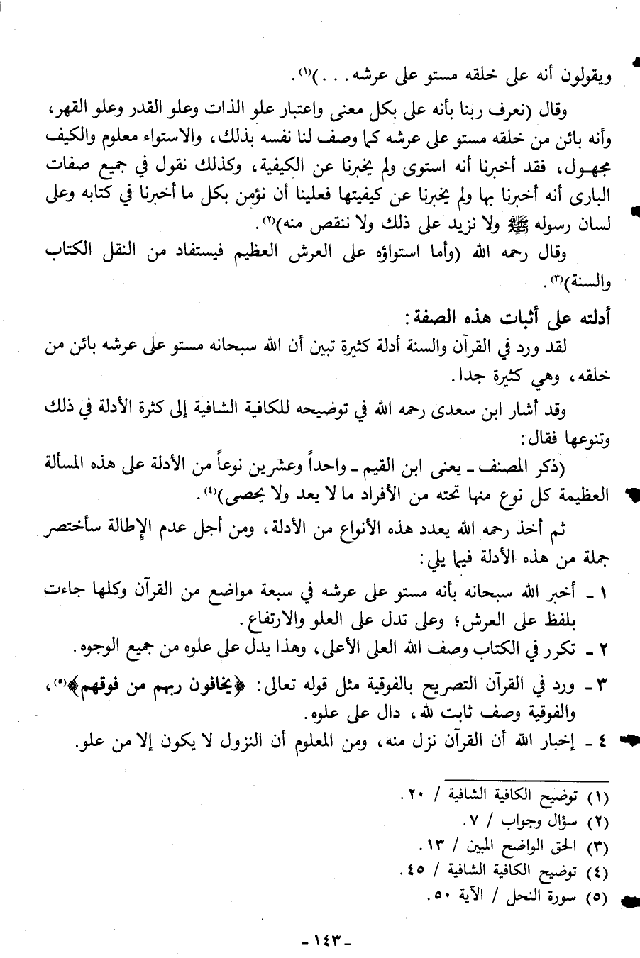 وقال رحمه الله "وأما استواؤه على العرش العظيم فيستفاد من النقل الكتاب والسنة"3.