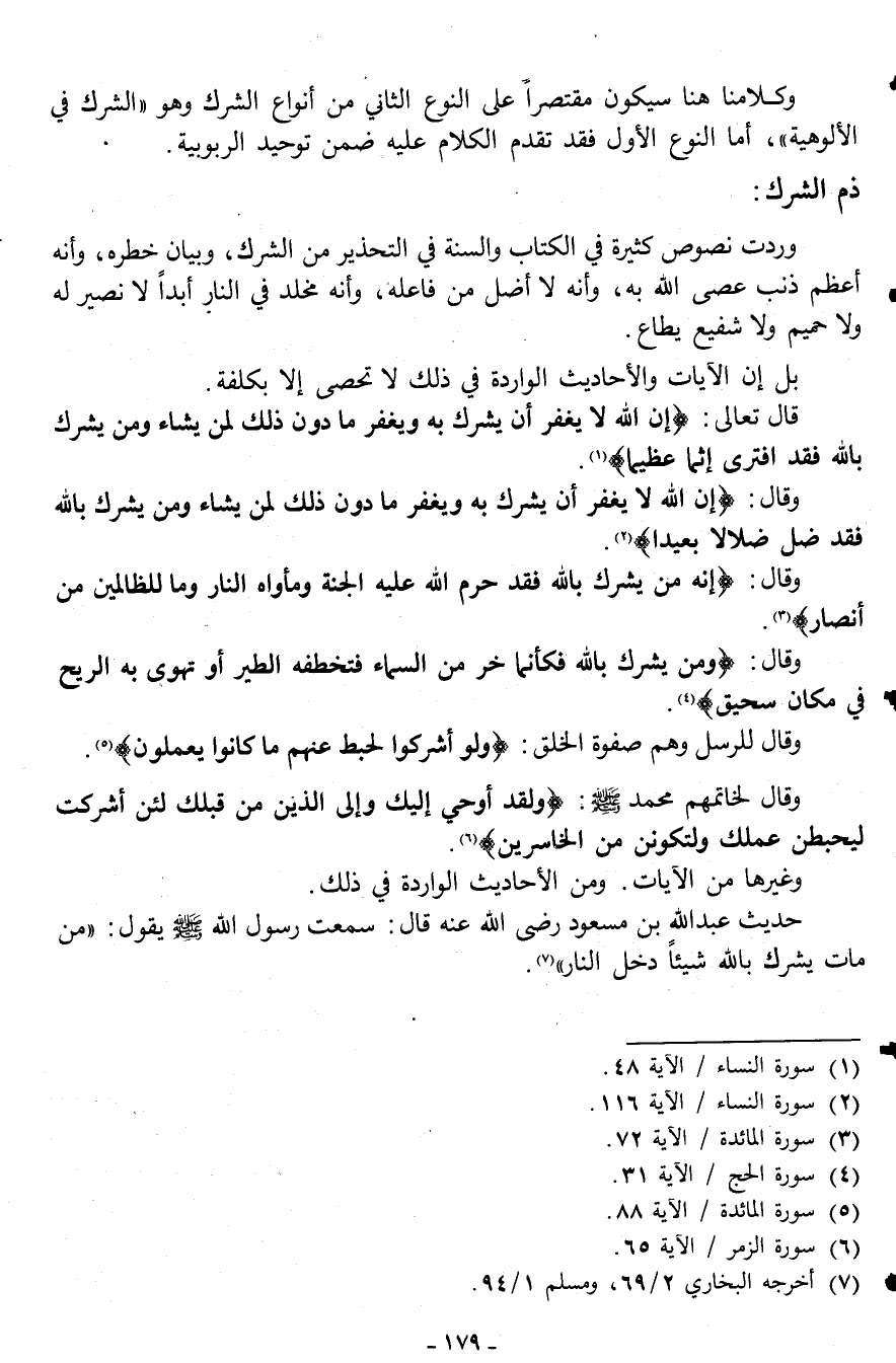 وقال: {إِنَّ اللَّهَ لا يَغْفِرُ أَنْ يُشْرَكَ بِهِ وَيَغْفِرُ مَا دُونَ ذَلِكَ لِمَنْ يَشَاءُ وَمَنْ يُشْرِكْ بِاللَّهِ فَقَدْ ضَلَّ ضَلالاً بَعِيداً} 2.
