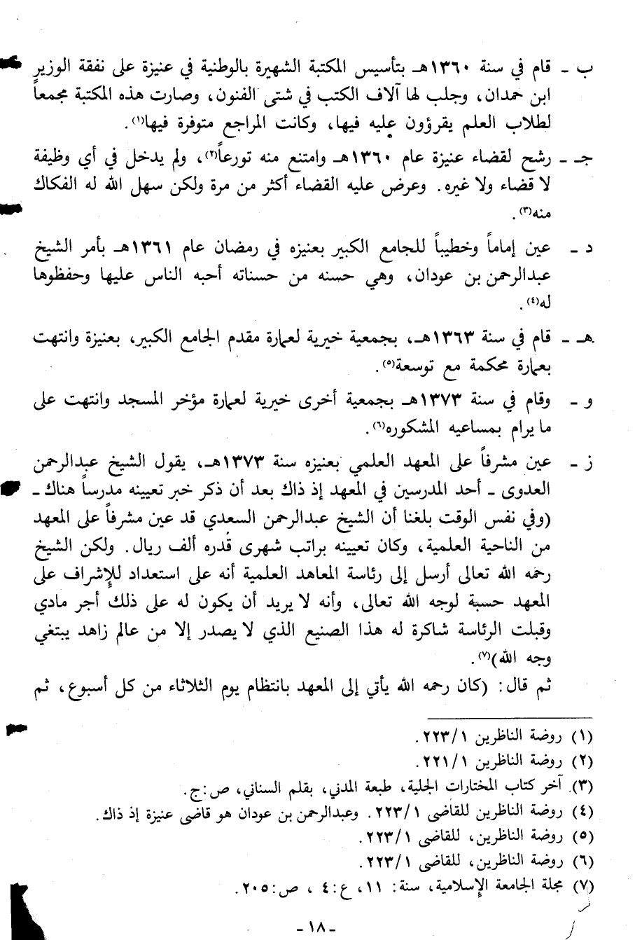 4 روضة الناظرين للقاضي 1/223، وعبد الرحمن بن عدوان هو قاضي عنيزة إذ ذاك.