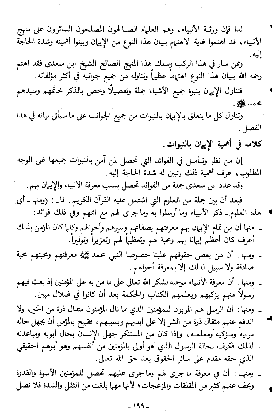 وقد عدد ابن سعدي جملة من الفوائد تحصل بسبب معرفة الأنبياء والإيمان بهم.