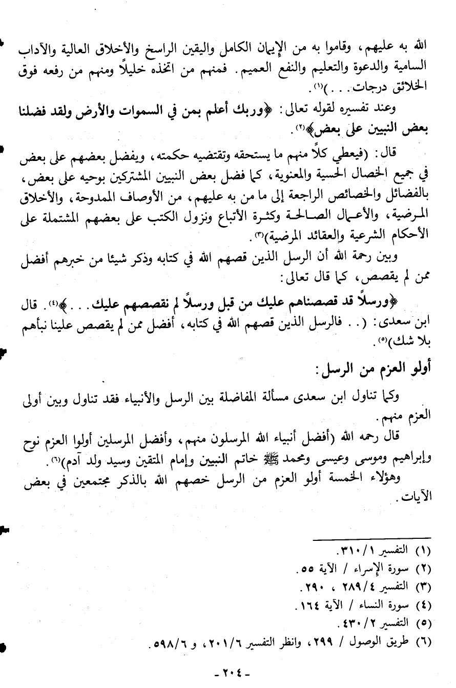 {وَرُسُلاً قَدْ قَصَصْنَاهُمْ عَلَيْكَ مِنْ قَبْلُ وَرُسُلاً لَمْ نَقْصُصْهُمْ عَلَيْكَ ... } 4. قال ابن سعدي: "....فالرسل الذين قصهم الله في كتابه، أفضل ممن لم يقصص علينا نبأهم بلا شك"5.