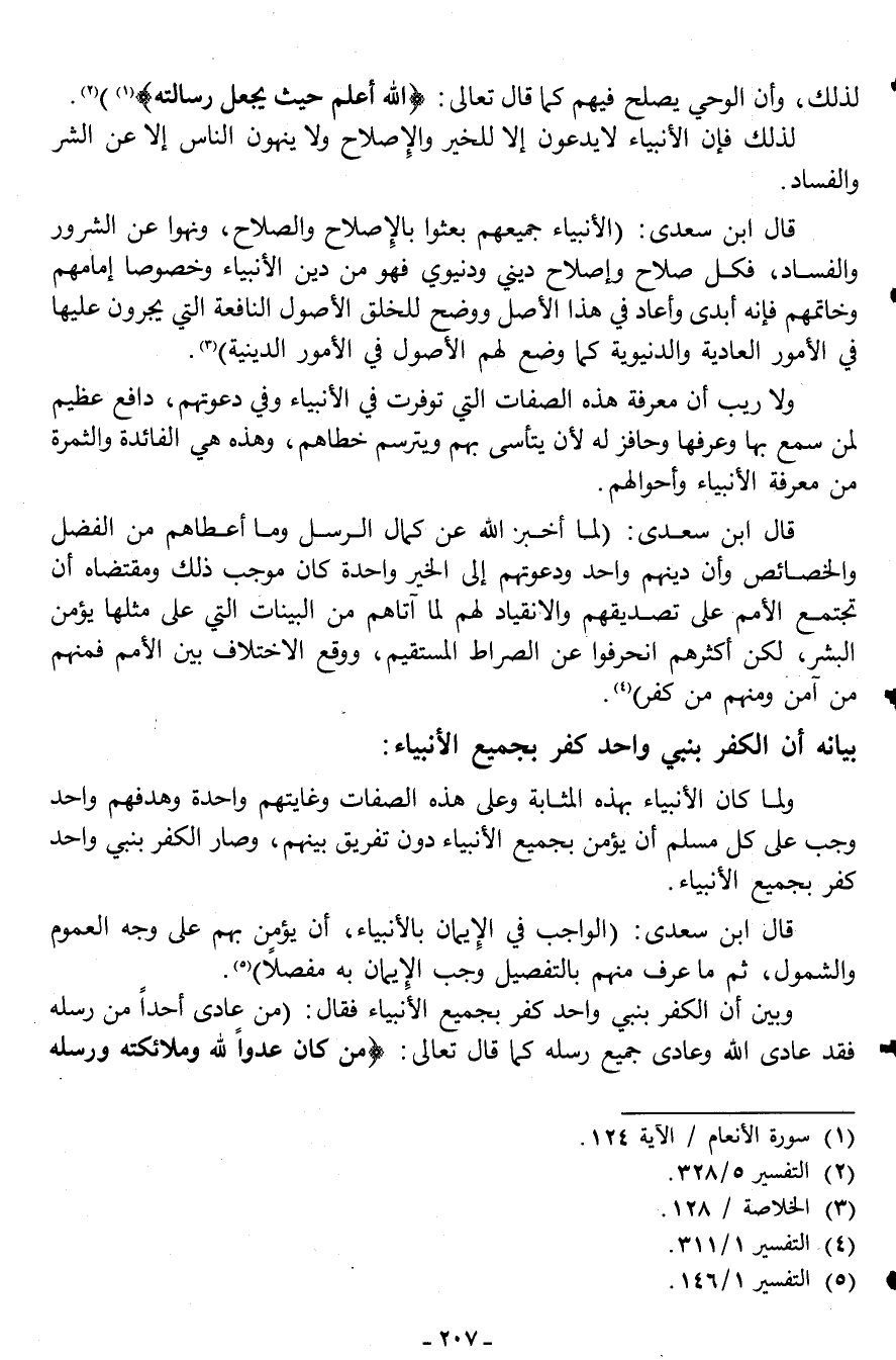 وبين أن الكفر بنبي واحد كفر بجميع الأنبياء فقال: "من عادى أحداً من رسله فقد عادى الله وعادى جميع رسله كما قال تعالى: {مَنْ كَانَ عَدُوّاً لِلَّهِ وَمَلائِكَتِهِ وَرُسُلِهِ