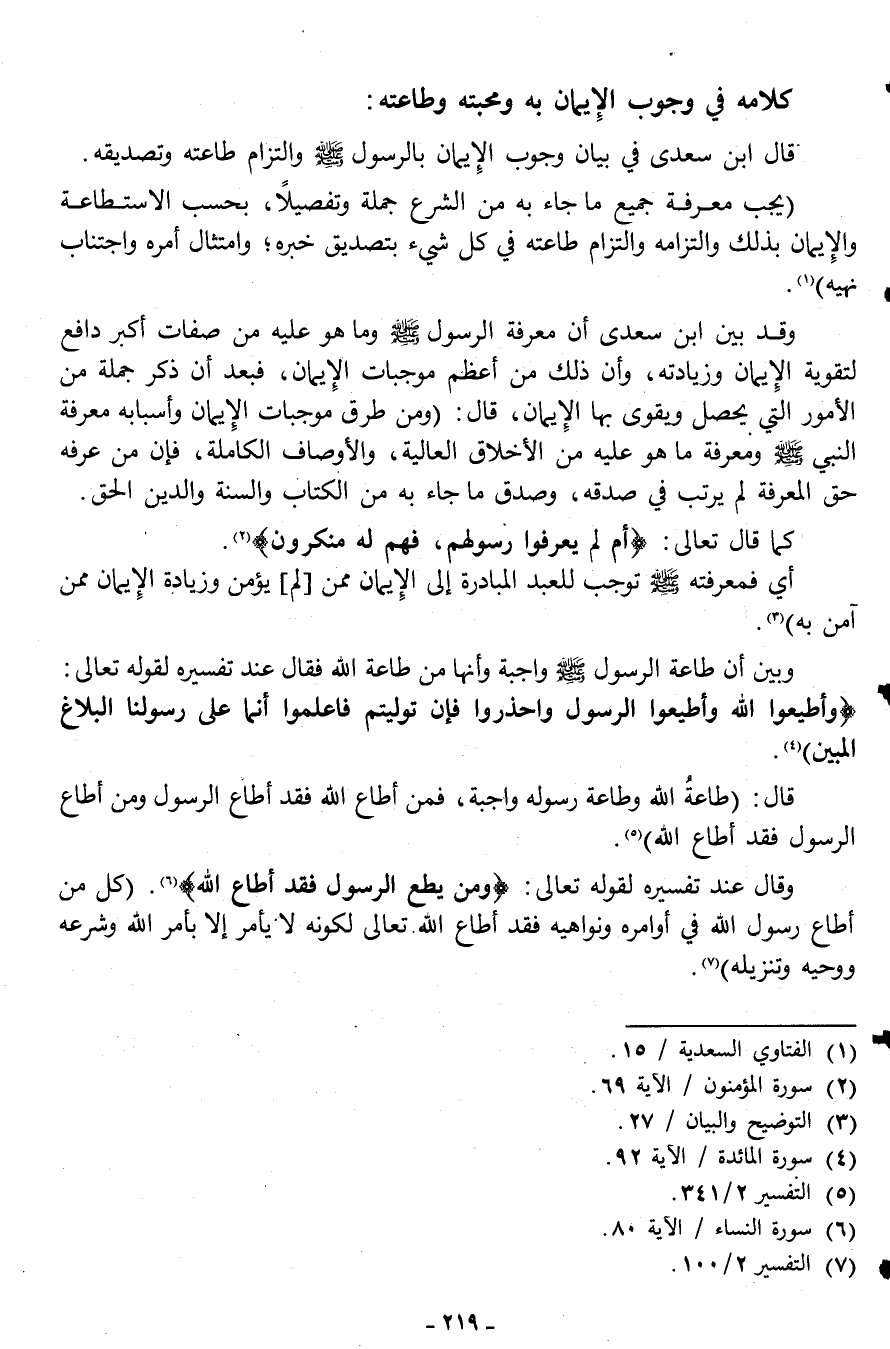قال ابن سعدي في بيان وجوب الإيمان بالرسل صلى الله عليه وسلم والتزام طاعته وتصديقه.