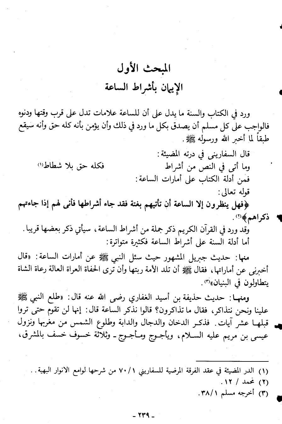 المبحث الأول: الإيمان بأشراط الساعة