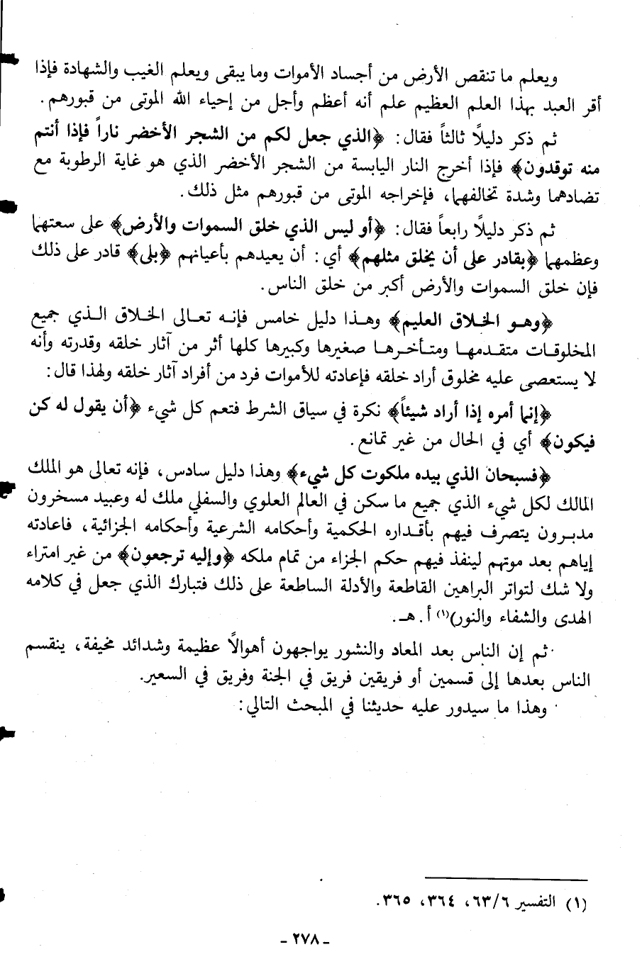{فَسُبْحَانَ الَّذِي بِيَدِهِ مَلَكُوتُ كُلِّ شَيْءٍ} وهذا دليل سادس، فإنه تعالى هو الملك المالك لكل شيء الذي جميع ما سكن في العالم العلوي والسفلي ملك له وعبيد مسخرون مدبرون يتصرف فيهم بأقداره الحكمية وأحكامه الشرعية وأحكامه الجزئية، فإعادته إياهم بعد موتهم لينفذ فيهم حكم الجزاء من تمام ملكه {وَإِلَيْهِ تُرْجَعُونَ} من غير امتراء ولا شك لتواتر البراهين القاطعة والأدلة الساطعة على ذلك فتبارك الذي جعل في كلامه الهدى والشفاء والنور"1. أ. هـ.