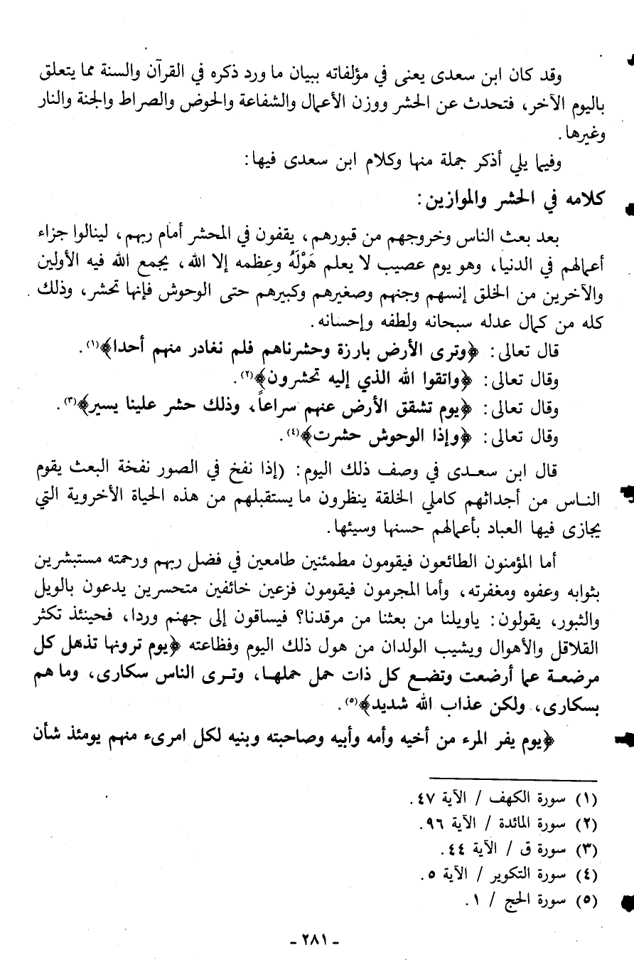 كلامه في الحشر والموازين: