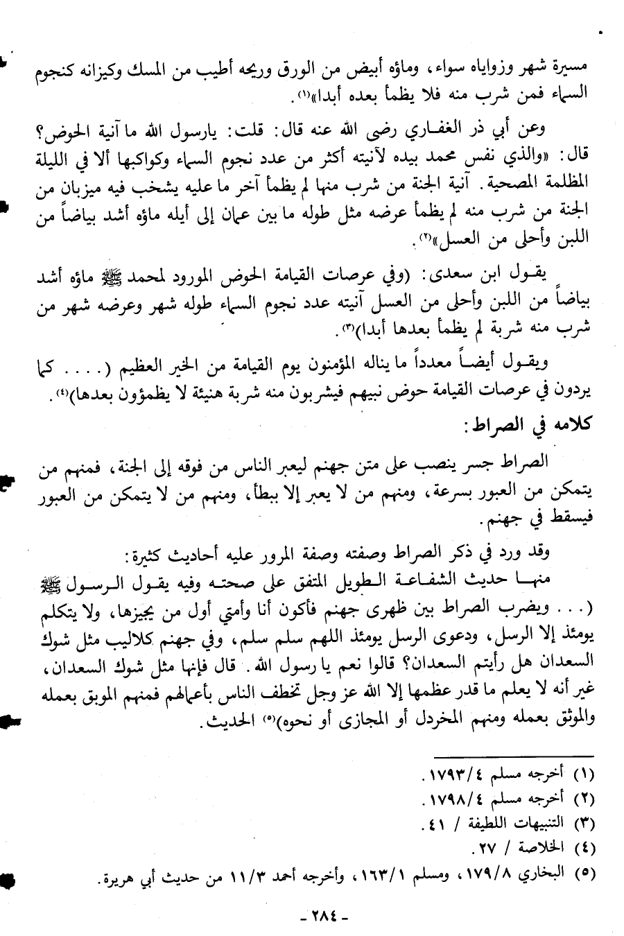 ويقول أيضاً معدداً ما يناله المؤمنون يوم القيامة من الخير العظيم "....كما يردون في عرصات القيامة حوض نبيهم فيشربون منه شربة هنيئة لا يظمؤون بعدها"4.