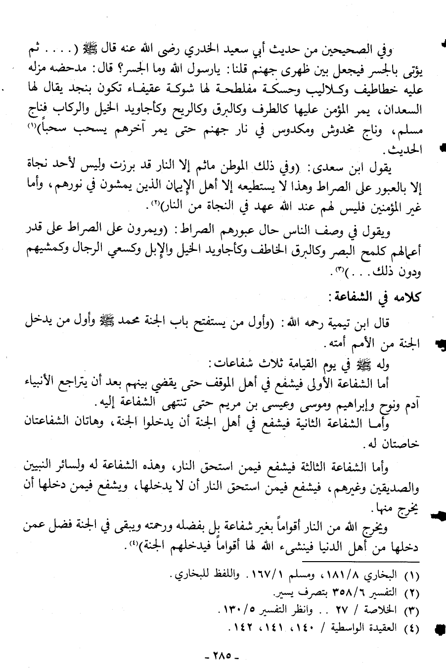 ويقول في وصف الناس حال عبورهم الصراط: "ويمرون على الصراط على قدر أعمالهم كلمح البصر وكالبرق الخاطف وكأجاويد الخيل والإبل وكسعي الرجال وكمشيهم ودون ذلك ... "3.