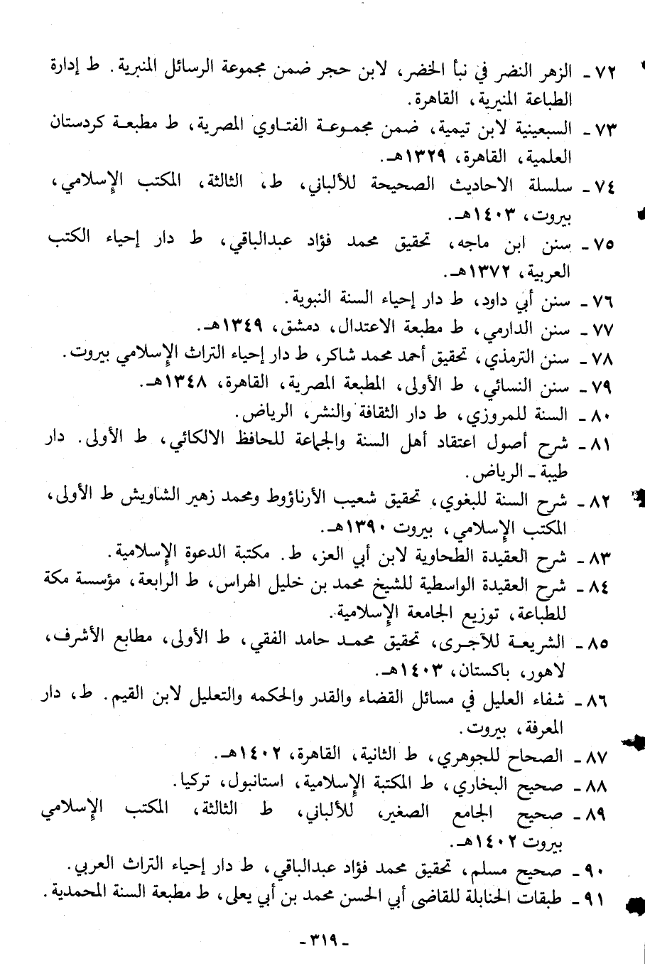 54- شرح العقيدة الطحاوية لابن أبي العز، ط مكتبة الدعوة الإسلامية.