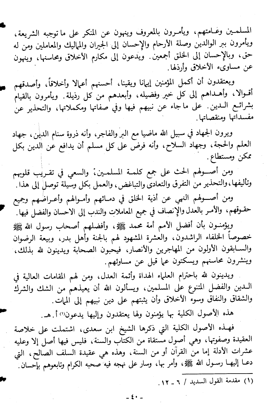 هذه الأصول الكلية بها يؤمنون ولها يعتقدون وإليها يدعون1 أ. هـ.