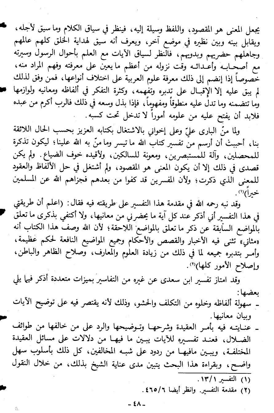 وقد امتاز تفسير ابن سعدي عن غيره من التفاسير بميزات متعددة أذكر فيما يلي بعضها: