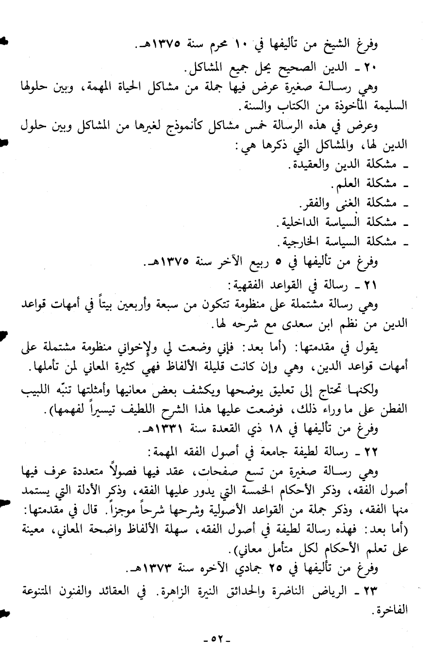 وهي رسالة صغيرة عرض فيها جملة من مشاكل الحياة المهمة، وبين حلولها السليمة المأخوذة من الكتاب والسنة.