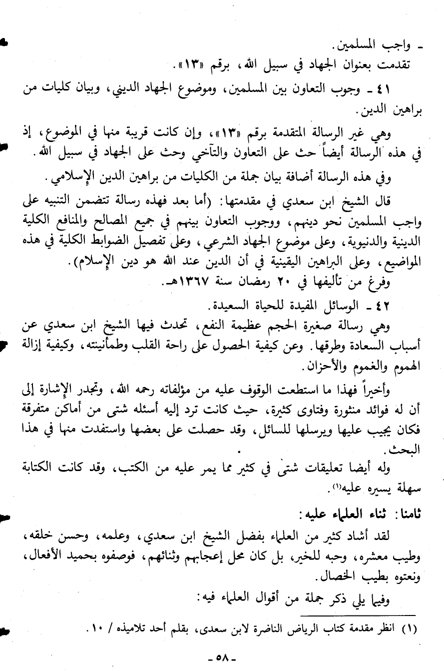 41ـ وجوب التعاون بين المسلمين، وموضوع الجهاد الديني، وبيان كليات من براهين الدين.