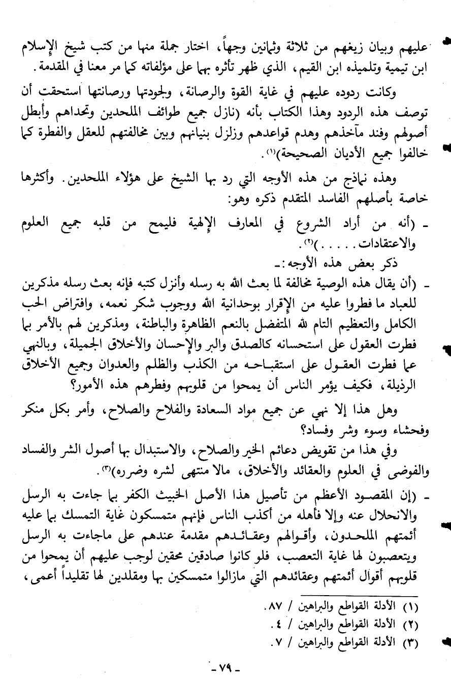 وهذه نماذج من هذه الأوجه التي رد بها الشيخ على هؤلاء الملحدين. وأكثرها خاصة بأصلهم الفاسد المتقدم ذكره وهو:
