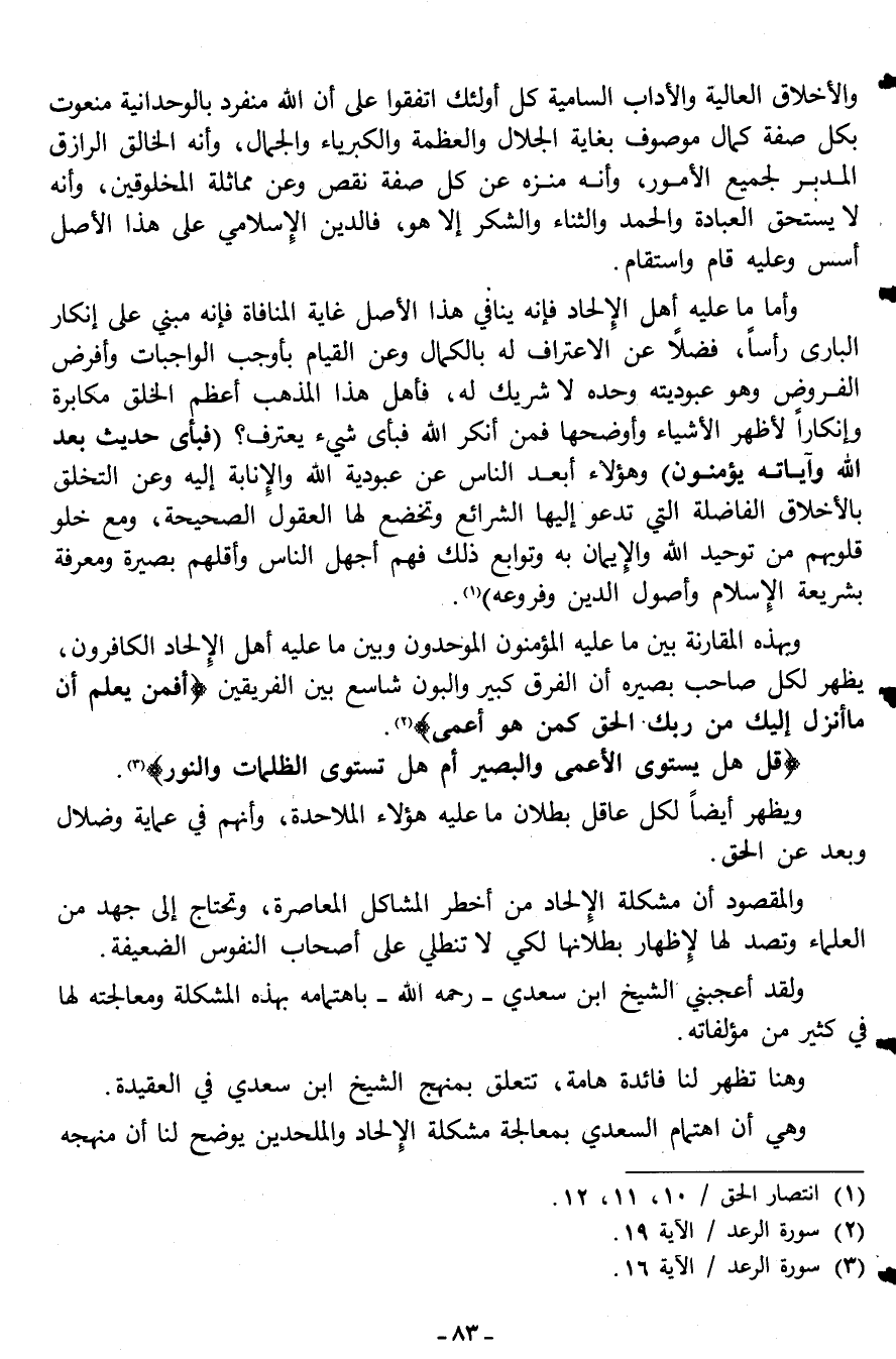 ولقد أعجبني الشيخ ابن سعدي ـ رحمه الله ـ باهتمامه بهذه المشكلة ومعالجته لها في كثير من مؤلفاته.