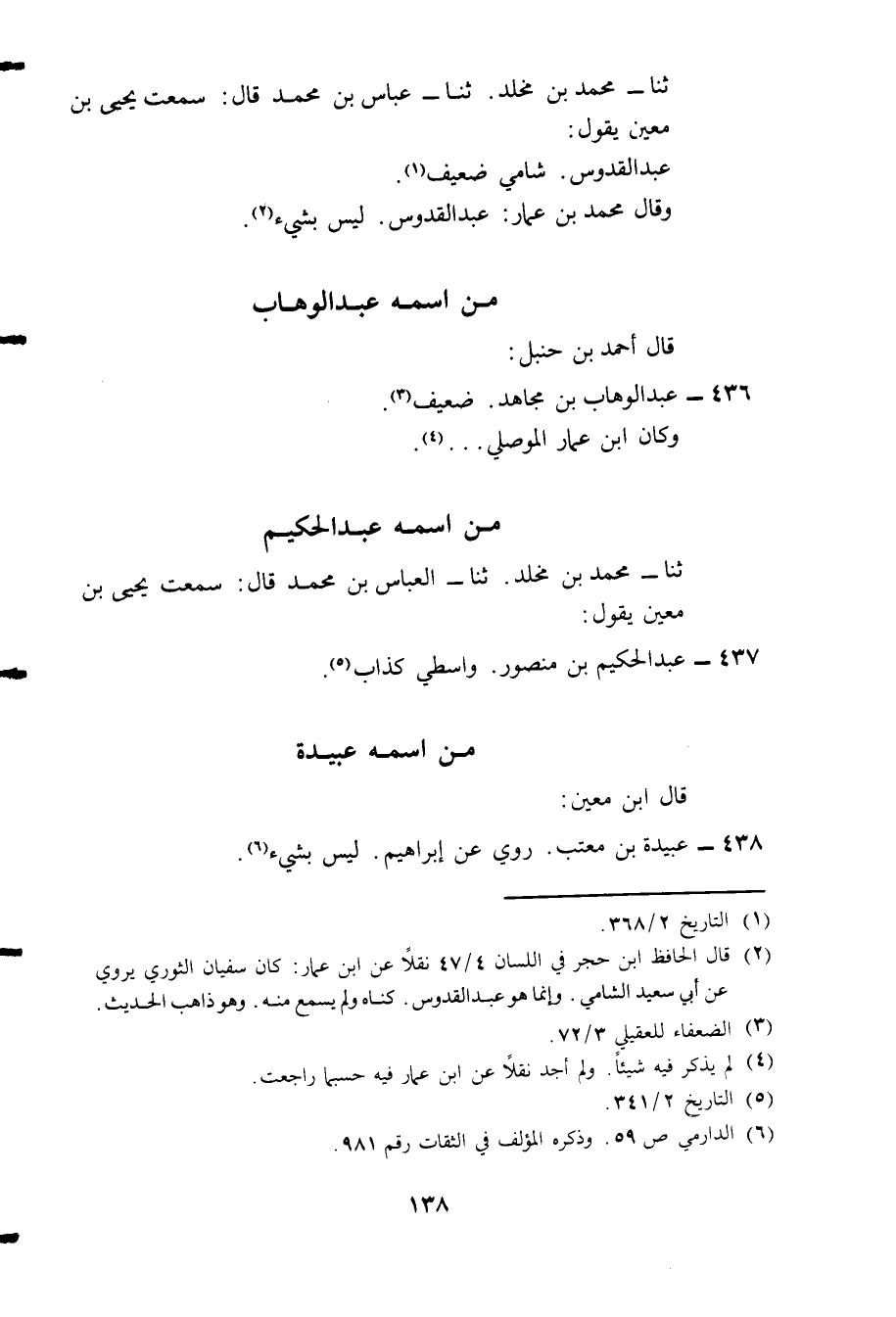 ثنا- محمد بن مخلد. ثنا- العباس بن محمد قال: سمعت يحيي بن معين يقول: