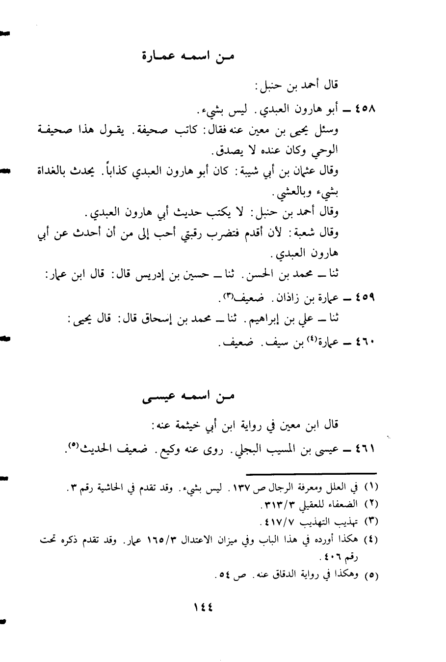 وسئل يحيي بن معين عنه فقال: كتاب صحيفة الوحي وكان عنده لا يصدق.