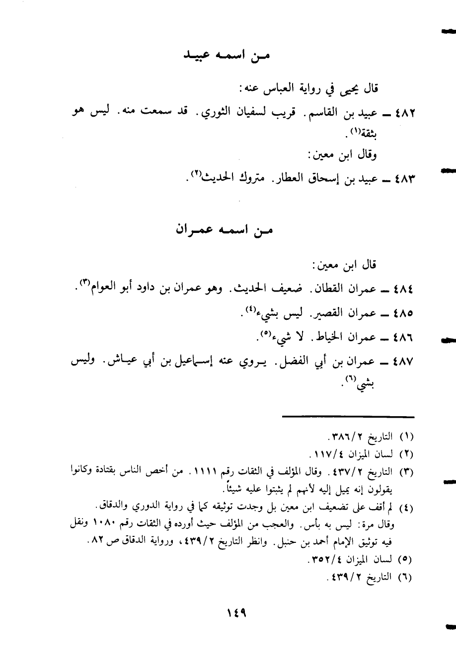 4 لم أقف على تضعيف ابن معين بل وجدت توثيقه كما في رواية الدوري والدقاق.