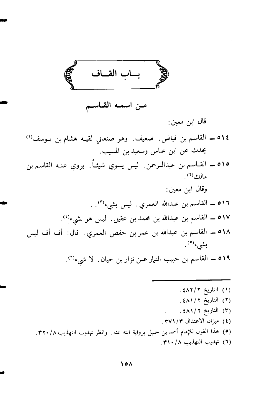 518- القاسم بن عبد الله بن عمر بن حفص العمري. قال: أف أف ليس بشيء.5.
