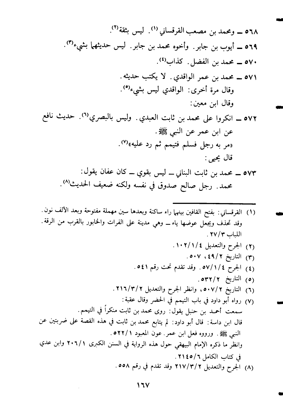 568- ومحمد بن مصعب القرقساني1. ليس بثقة2.