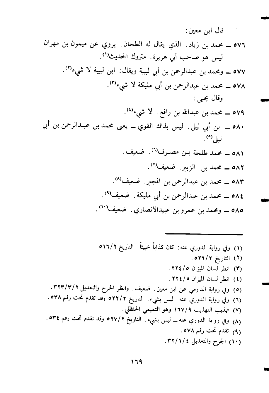 6 وفي رواية الدوري عنه. ليس بشيء. التاريخ 2/522وقد تقدم تحت رقم 538.