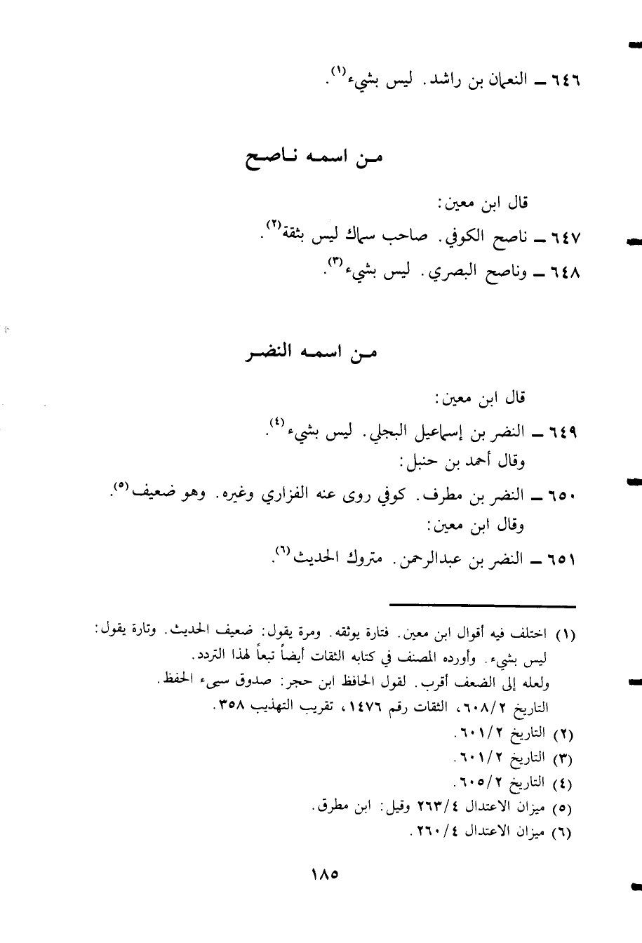 650- النضر بن مطرف. كوفي روى عنه الفزاري وغيره. وهو ضعيف5.