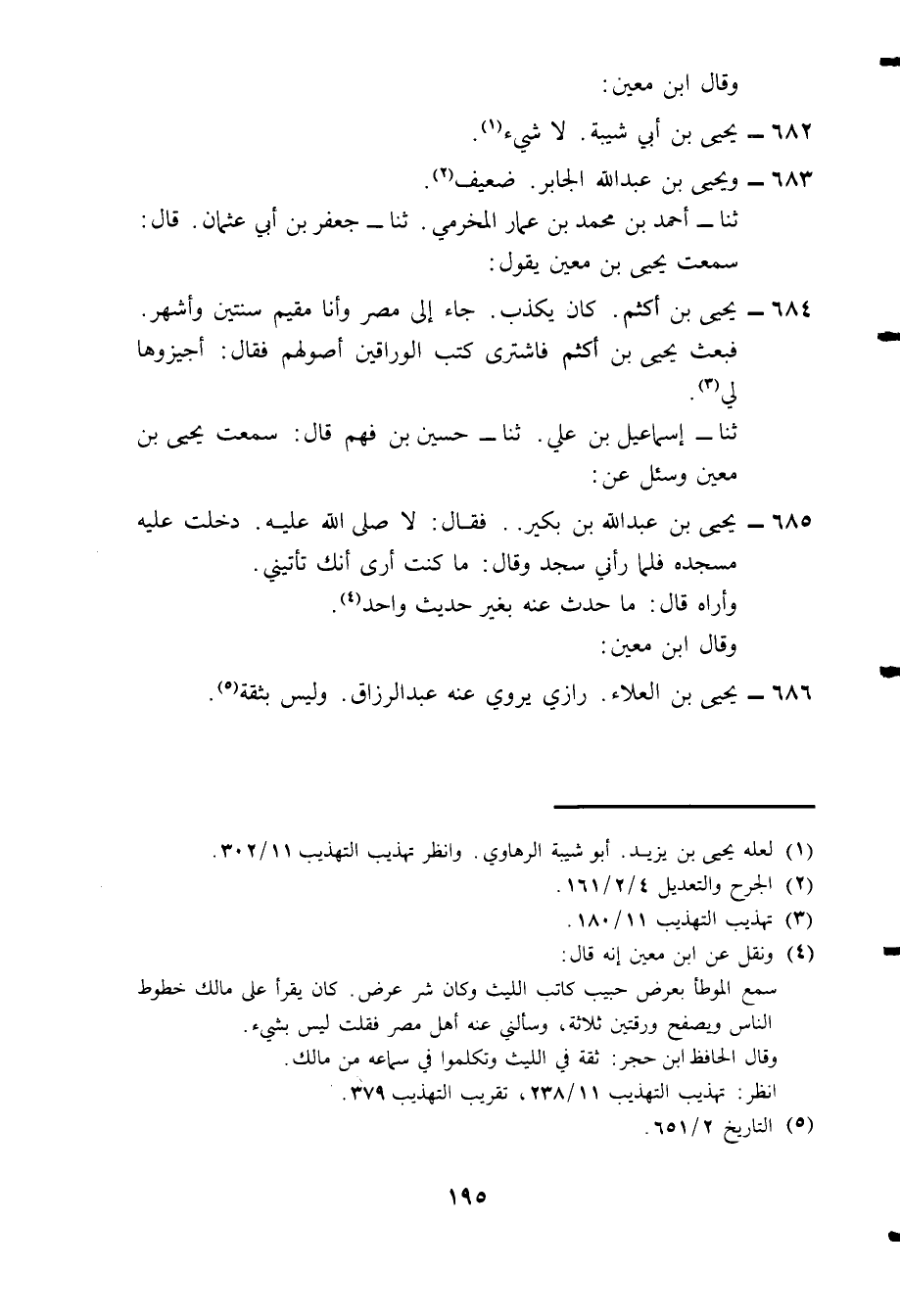 684- يحيي بن أكثم. كان يكذب. جاء إلى مصر وأنا مقيم سنتين وأشهر. فبعث يحيي بن أكثم فاشترى كتب الوراقين أصولهم فقال: أجيزوها لي3.