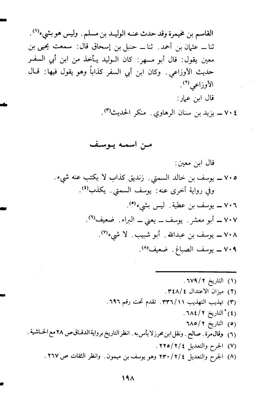 705- يوسف بن خالد السمتي. زنديق كذاب لا يكتب عنه شيء.