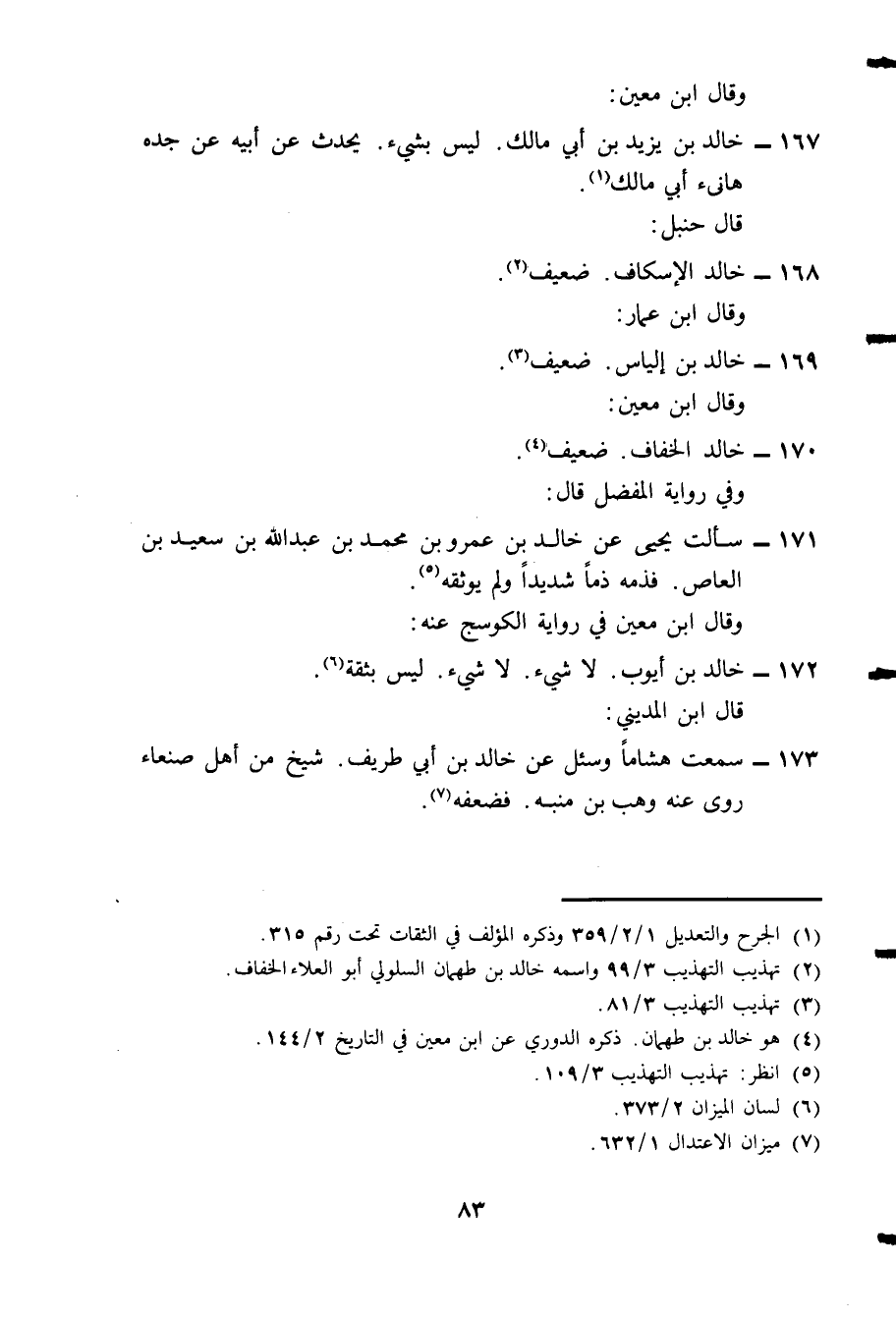 171- سألت يحيي عن خالد بن عمرو بن محمد بن عبد الله بن سعيد بن العاص. فذمه ذماً شديداً ولم يوثقه5.