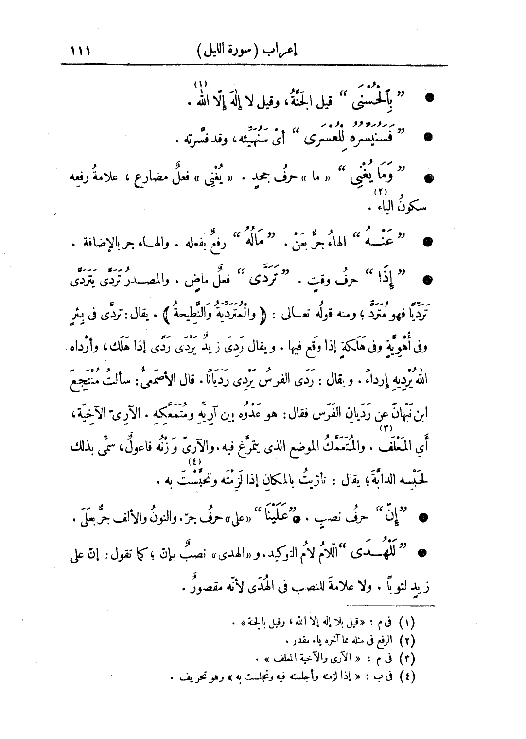 • "إذا" حرف وقت. "تردى" فعل ماض. والمصدر تردى يتردى ترديا فهو مترد؛ ومنه قوله تعالى: (والمتردية والنطيحة). يقال: تردى في بئر وفي أهوية وفي هلكةٍ إذا وقع فيها. ويقال رَدِى زيدٌ يردى ردًى إذا هلك، وأرداه الله يرديه إرداء. ويقال: ردَى الفرس يردِى رديانا. قال الأصمعي: سألت منتجع ابن نبهان عن رديان الفرس، فقال: هو عدوه بين آريه ومتمعكه. الآري الآخية، أي المعلف. والمتعمك الموضع الذي يتمرغ فيه. والآري وزنه فاعولٌ، سمي بذلك لحبسه الدابة؛ يقال: تأريتُ بالمكان إذا لزمته وتحبست به.