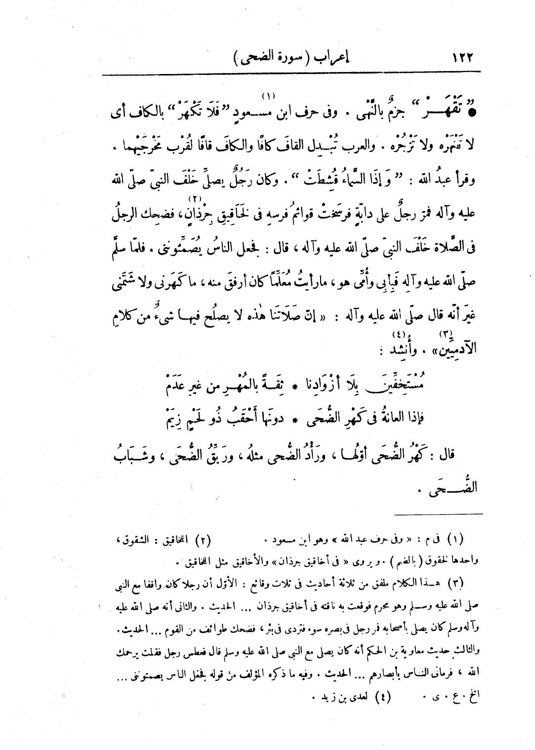 • "تقهر" جزمٌ بالنهي. وفي حرف ابن مسعود "فلا تكهر" بالكاف أي لا تنهره ولا تزجره. والعرب تبدل القاف كافا والكاف قافا لقرب مخرجيهما. وقرأ عبد الله: "وإذا السماء قشطت". وكان رجل يصلي خلف النبي صلى الله عليه وآله، فمر رجلٌ على دابةٍ فرسخت قوائم فرسه في لخاقيق جرذان، فضحك الرجل في الصلاة خلف النبي صلى الله عليه وآله، قال: فجعل الناس يصمتونني. فلما سلم صلى الله عليه وآله، فبأبي وأمي هو، ما رأيت معلما كان أرفق منه، ما كهرني ولا شتمني غير أنه قال صلى الله عليه وآله: «إن صلاتنا هذه لا يصلح فيها شيء من كلام الآدميين». وأنشد:
